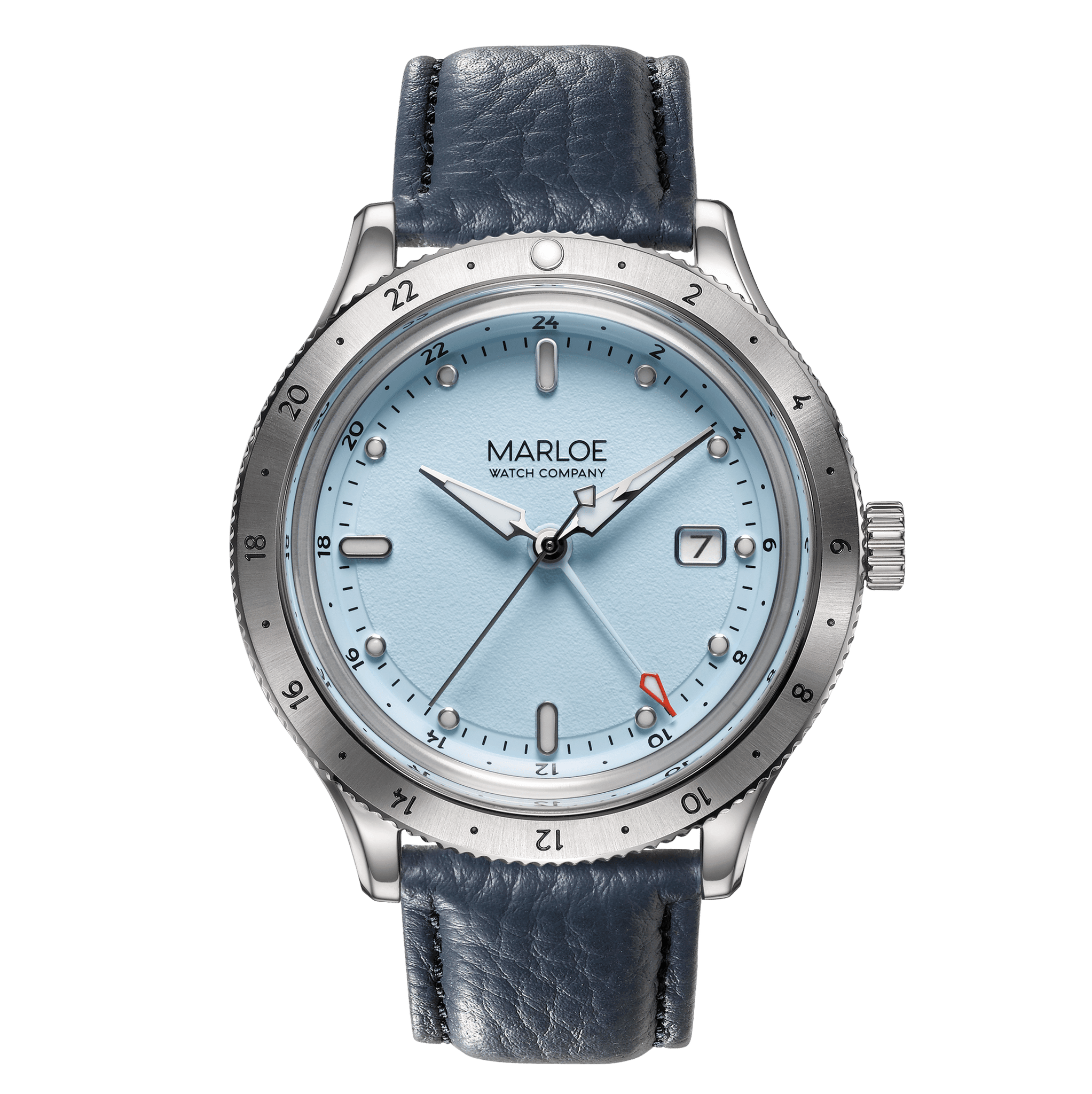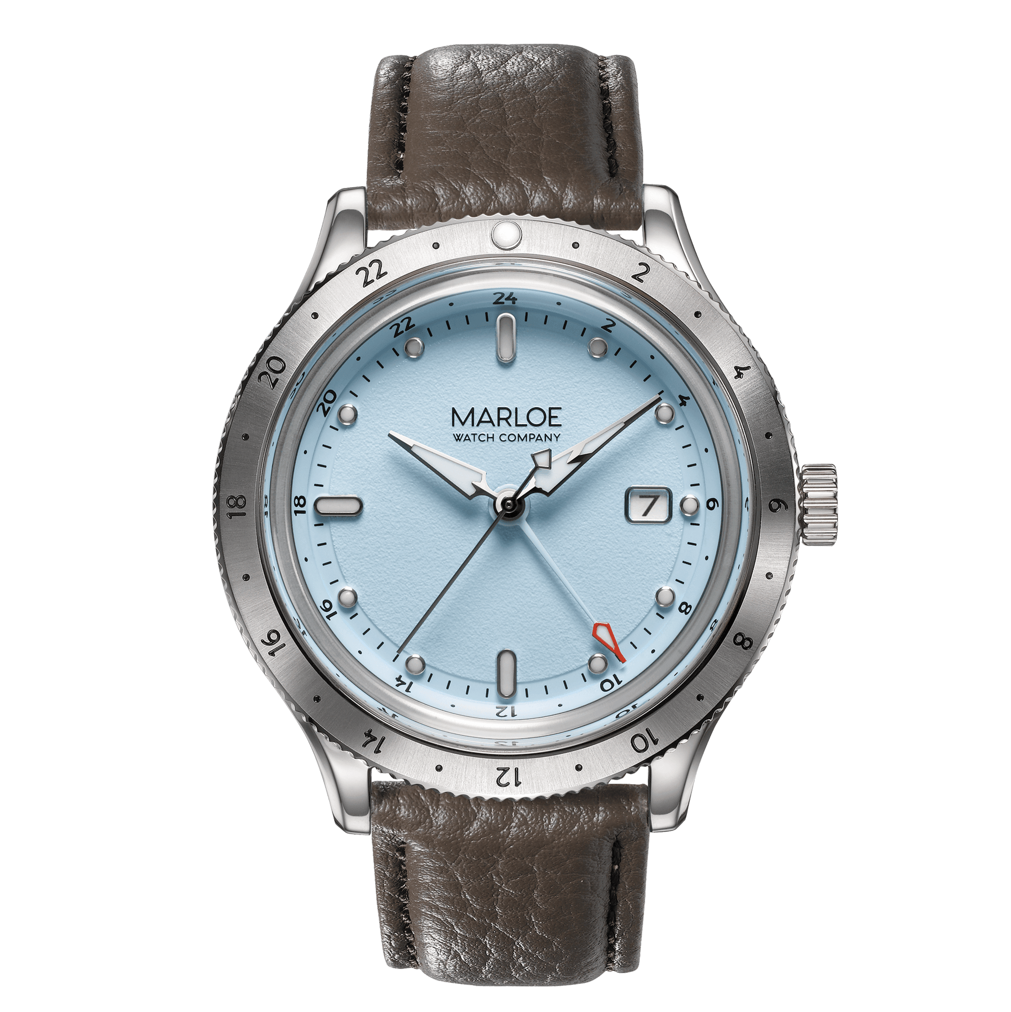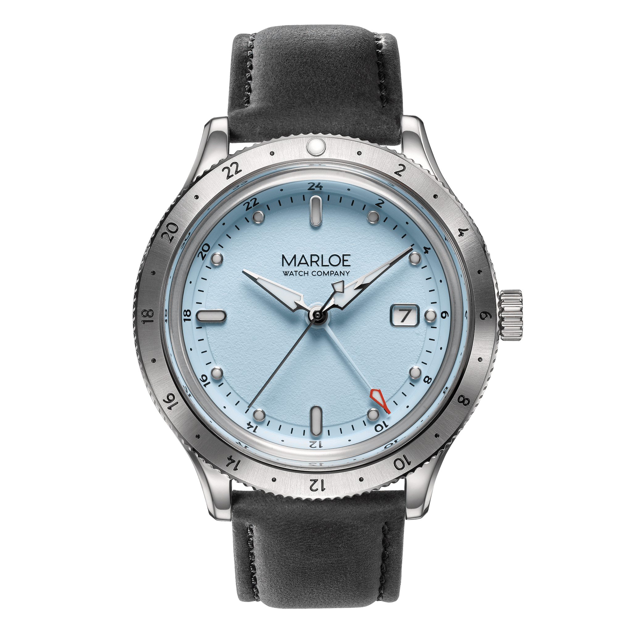 The Miyota 9075 is what’s referred to as a 'true' GMT. This means the main hour hand can jump in hour increments, forward or back, to change the “local” time to whatever you fancy. The 24-hour GMT hand remains in place, slowly revolving around the dial showing your ‘home’ time.